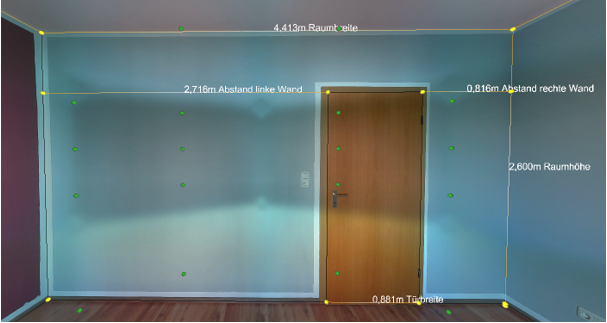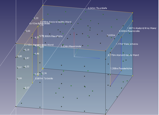 Das Verfahren beruht auf die Erfassung eines Raumes mit einem 3D Erfassungsssytem der Firma HottScan.